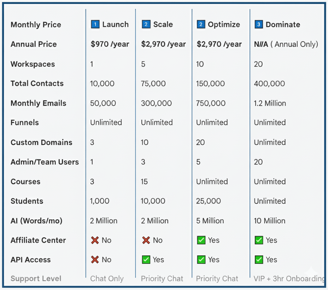 $81/mo (billed annually) — Perfect for entrepreneurs launching their first funnel and website.